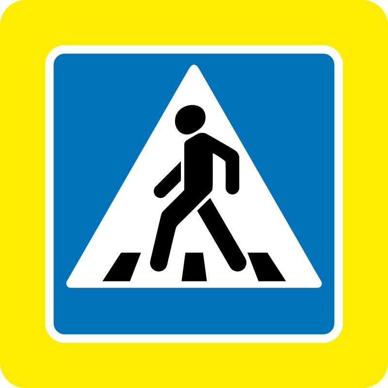 Дорожный знак 5.19.1 "Пешеходный переход" с желто-зеленой полосой